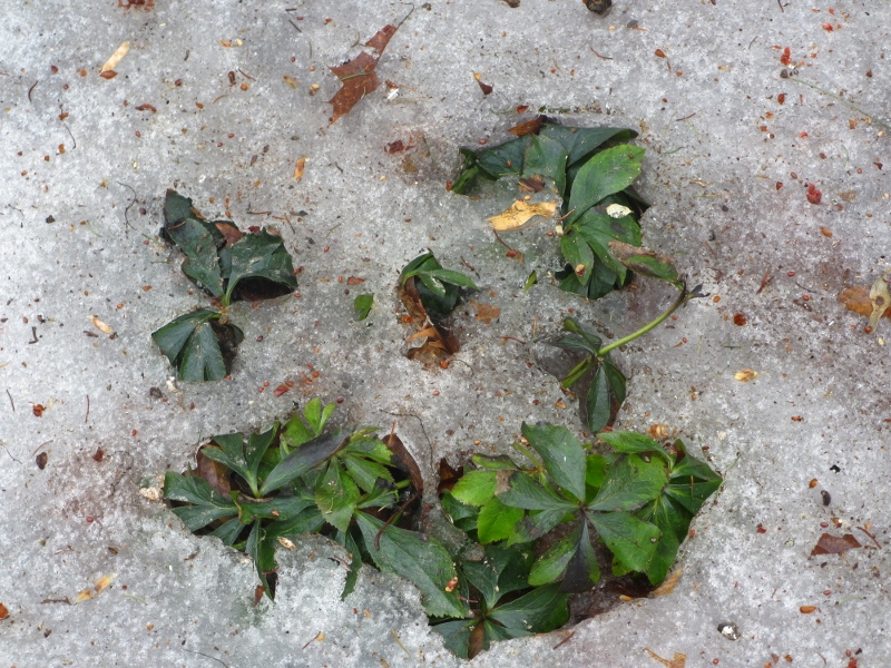 They are even pushing through shaded piles of snow and old brush.